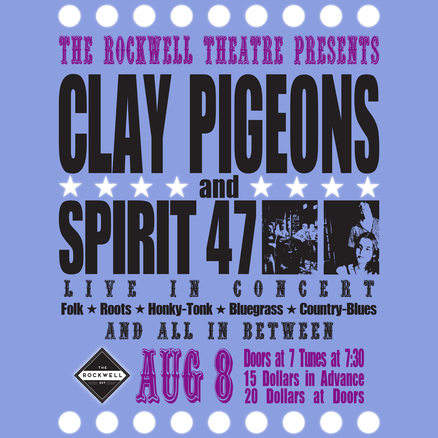 Rockwell Theater for a night of Folk, Roots, Honky Tonk, Bluegrass & Country Blues.